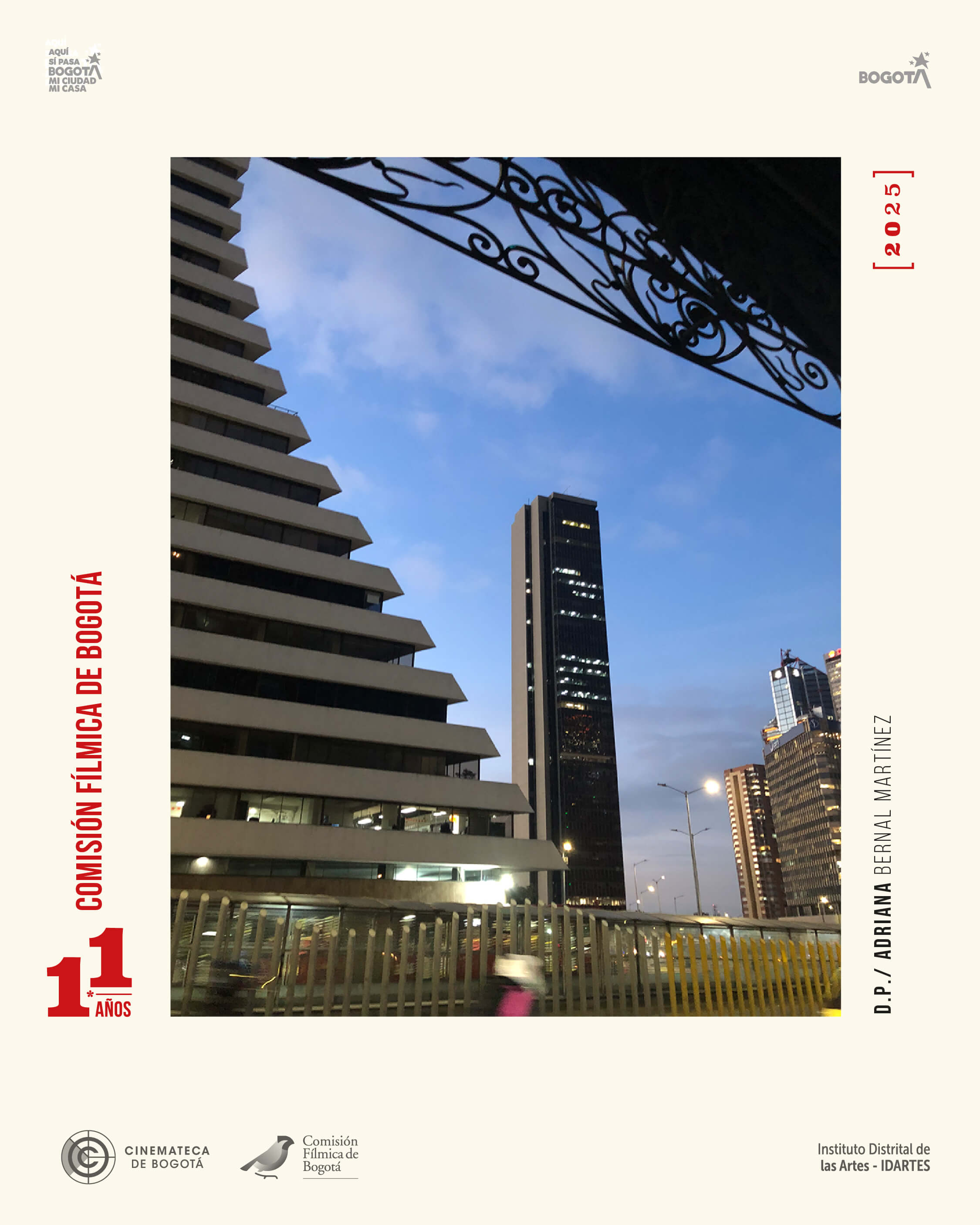 Retratos de Bogotá: 11 años, en 11 miradas Como parte del homenaje de estos 11 años, la Comisión Fílmica de Bogotá invitó a 11 directoras y directores de fotografía que han sabido mirar, encuadrar y revelar la esencia de Bogotá a través de su lente. Esta iniciativa busca rendir un tributo especial a la ciudad y a quienes, con su sensibilidad y oficio, la han convertido en protagonista de innumerables historias. Clic en la foto para ampliar | |