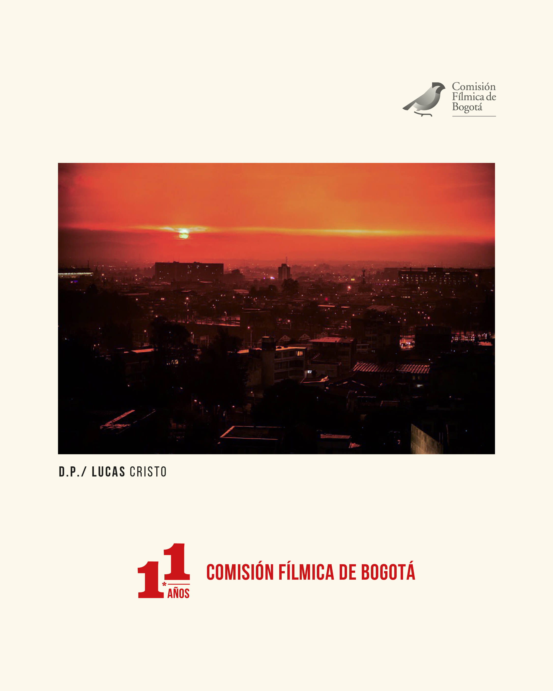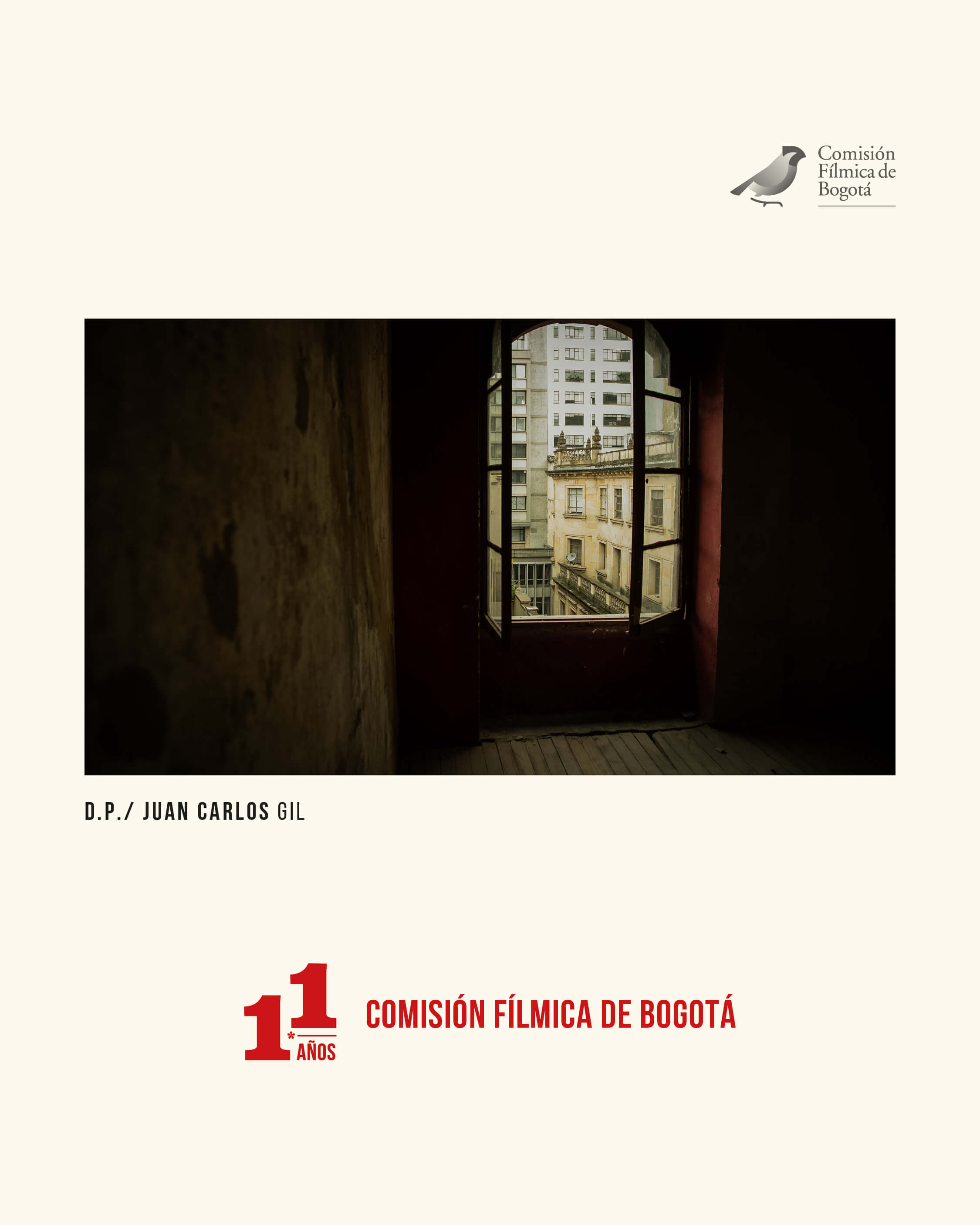 La Comisión Fílmica de Bogotá - CFB celebra 11 años, un camino que se recorre en conjunto con 27 entidades distritales que han abierto las puertas de la ciudad para convertirla en el alma de cada rodaje. Durante este tiempo la CFB ha acompañado al sector audiovisual en su crecimiento, cada acción que se emprende impulsa a que Bogotá brille en el mapa audiovisual mundial, consolidándose como un destino en el que la imaginación cobra vida. | |